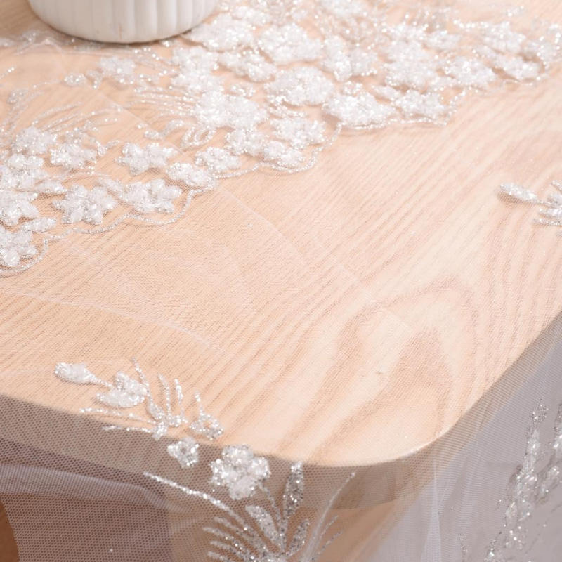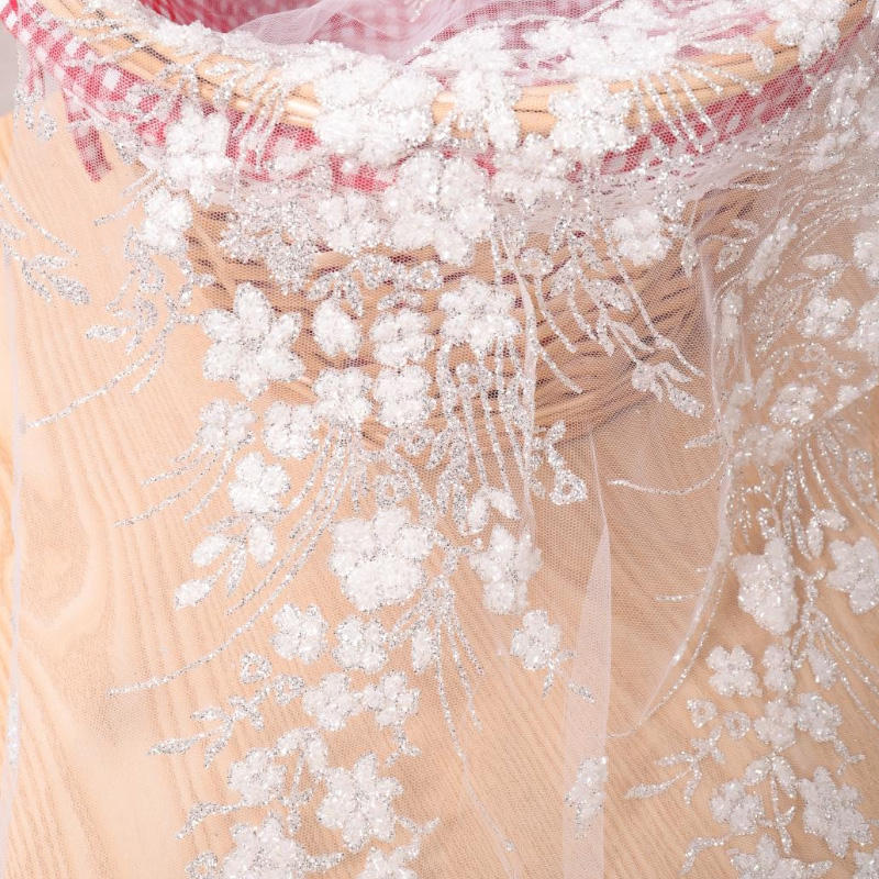 Ngoài việc làm vải cưới bằng vải ren đính cườm sequin màu bạc, nó còn có thể được sử dụng làm sườn xám, quần áo sân khấu, thời trang, ga trải giường, rèm cửaï¼và vải bọc cho ghế sofa, đệm, v.v.Đầy đủ màu sắc.